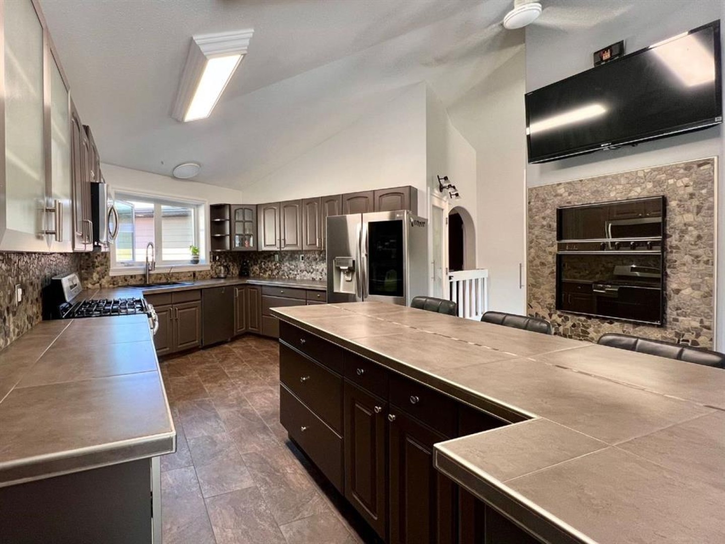 In the home you will find beautiful archways, sprawling spaces, and spa-grade additions in the ensuite. Additional insulation between bedrooms, the upper and lower levels, as well as encompassing the entire house provide not just sound barrier but energy efficency. There is in floor heat throughout the home, as well as a wood burning stove on the main level.