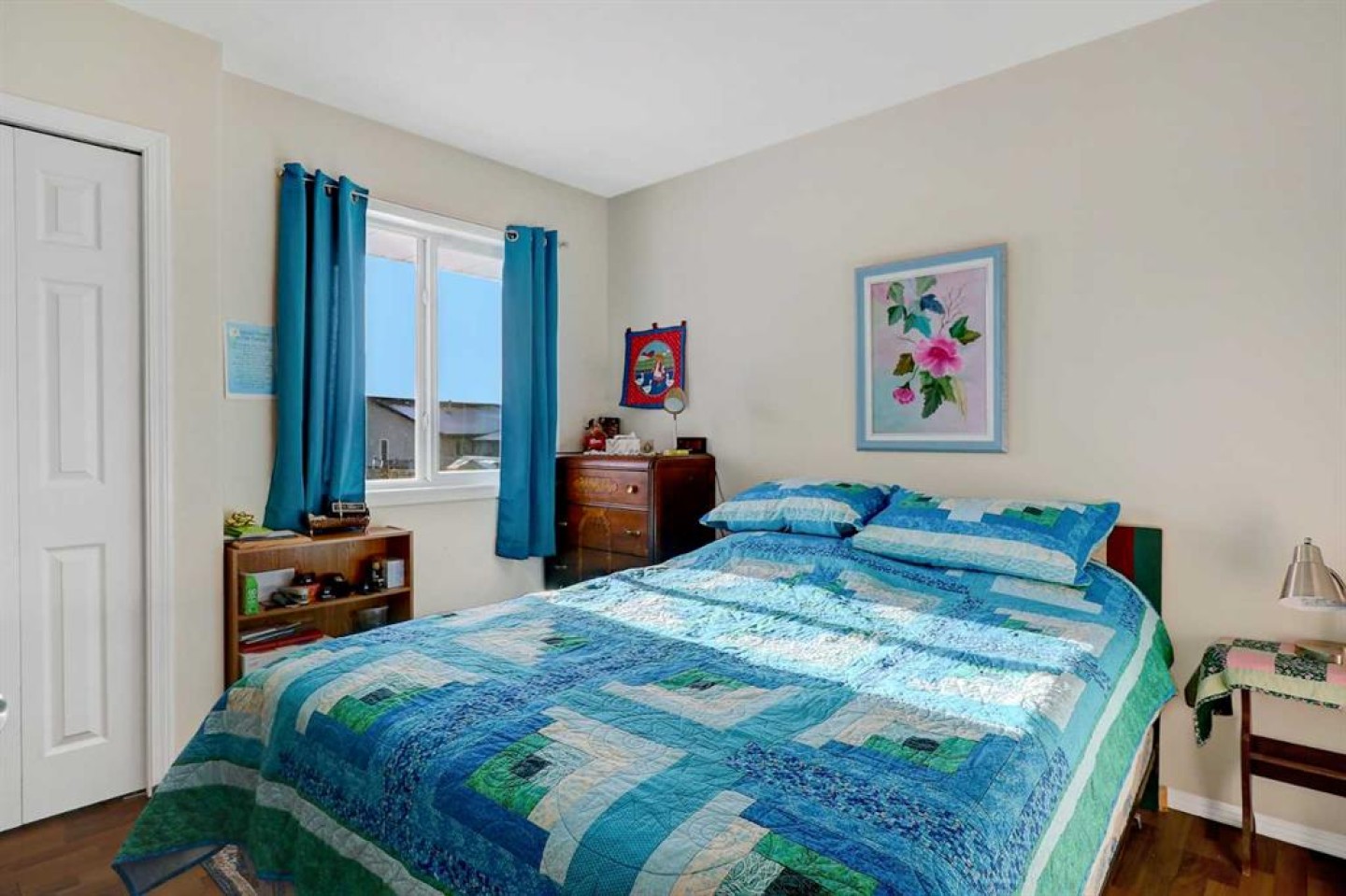 Additional features include a heated garage with direct access to both the home and the exterior. The front yard is landscaped with lawn, while the backyard has been thoughtfully transformed into flowered and treed areas, along with a dedicated garden space.