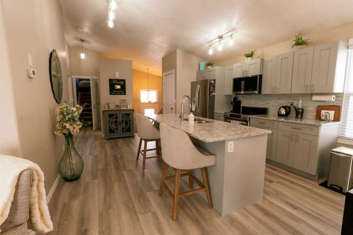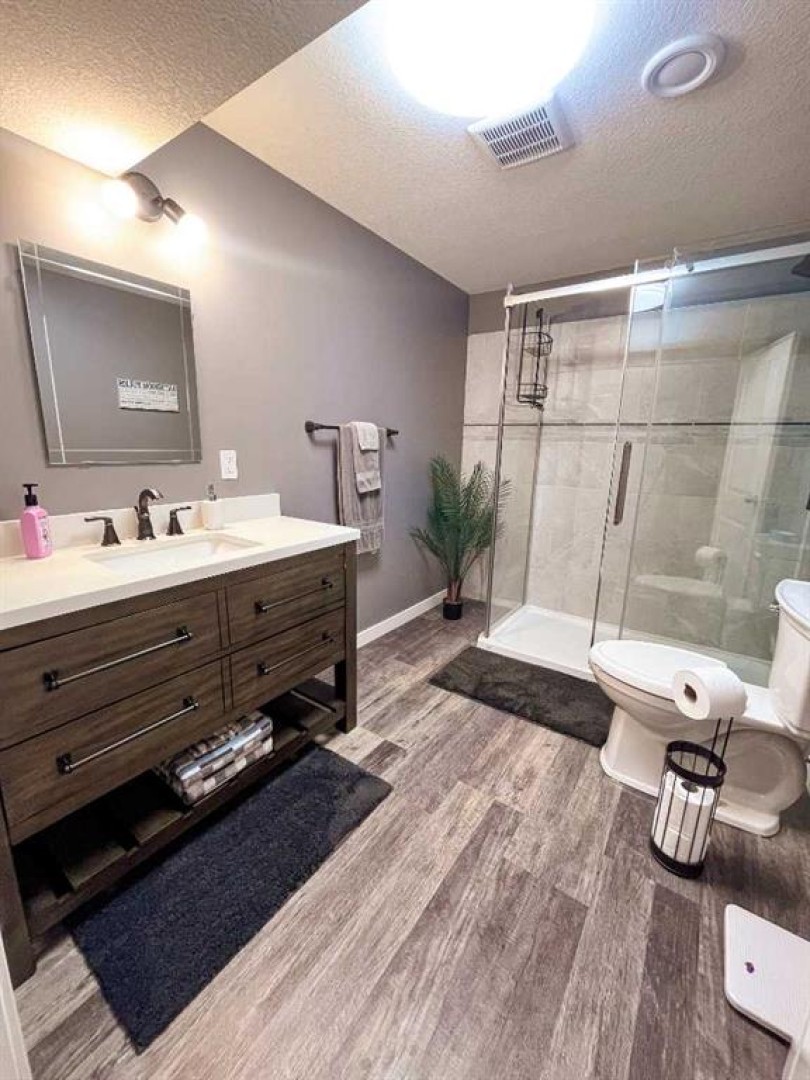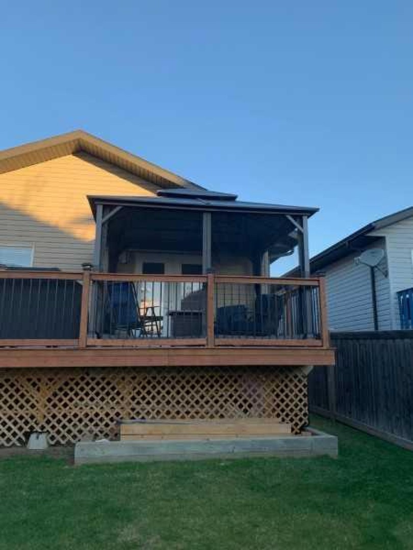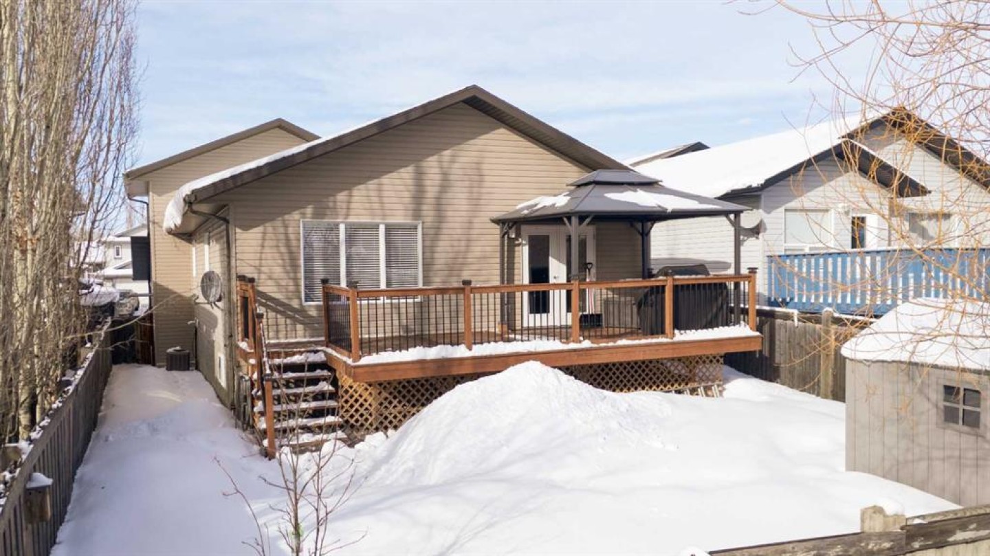 Welcome to this fully upgraded modified bi-level located in the highly desirable community of Signature Falls, offering 4 bedrooms and 3 full bathrooms with a functional and spacious layout perfect for families.This home has seen many recent upgrades, including fresh paint, new quartz countertops, soft-close cabinetry, new laminate flooring, and newer stainless steel appliances including microwave, refrigerator, and dishwasher. The hot water tank was replaced in 2023, adding extra peace of mind. The home also features central air conditioning, vaulted ceilings, and a convenient walk-in pantry.The bright living room overlooks the backyard and opens onto a large deck covered with a gazebo, creating the perfect space for outdoor relaxation or entertaining. The private primary bedroom level offers a spacious retreat complete with a walk-in closet and a 4-piece ensuite featuring a jacuzzi tub and separate shower.The fully developed basement provides additional living space with a large family room, Bedroom and a Full Bathroom while the 24x24 heated garage, fenced yard, and landscaped backyard add to the overall comfort and functionality of this home.Located in Signature Falls, one of Grande Prairie’s most sought-after neighbourhoods, this home is close to parks, schools, walking trails, and all amenities.A fantastic opportunity to own a beautifully upgraded home in a great location — book your showing today!