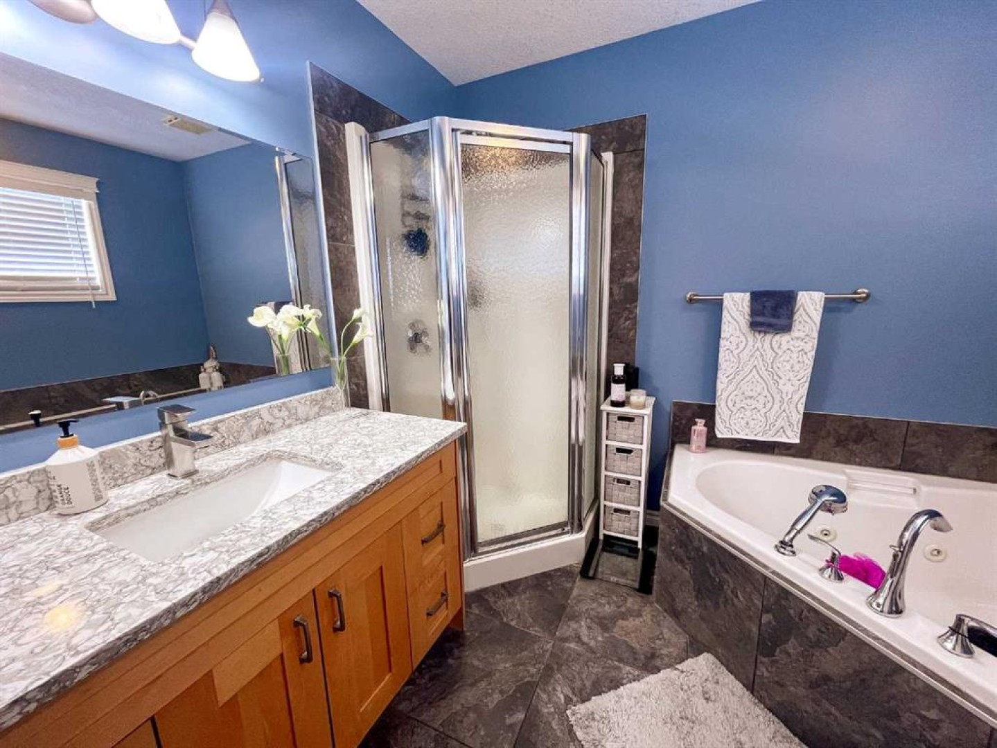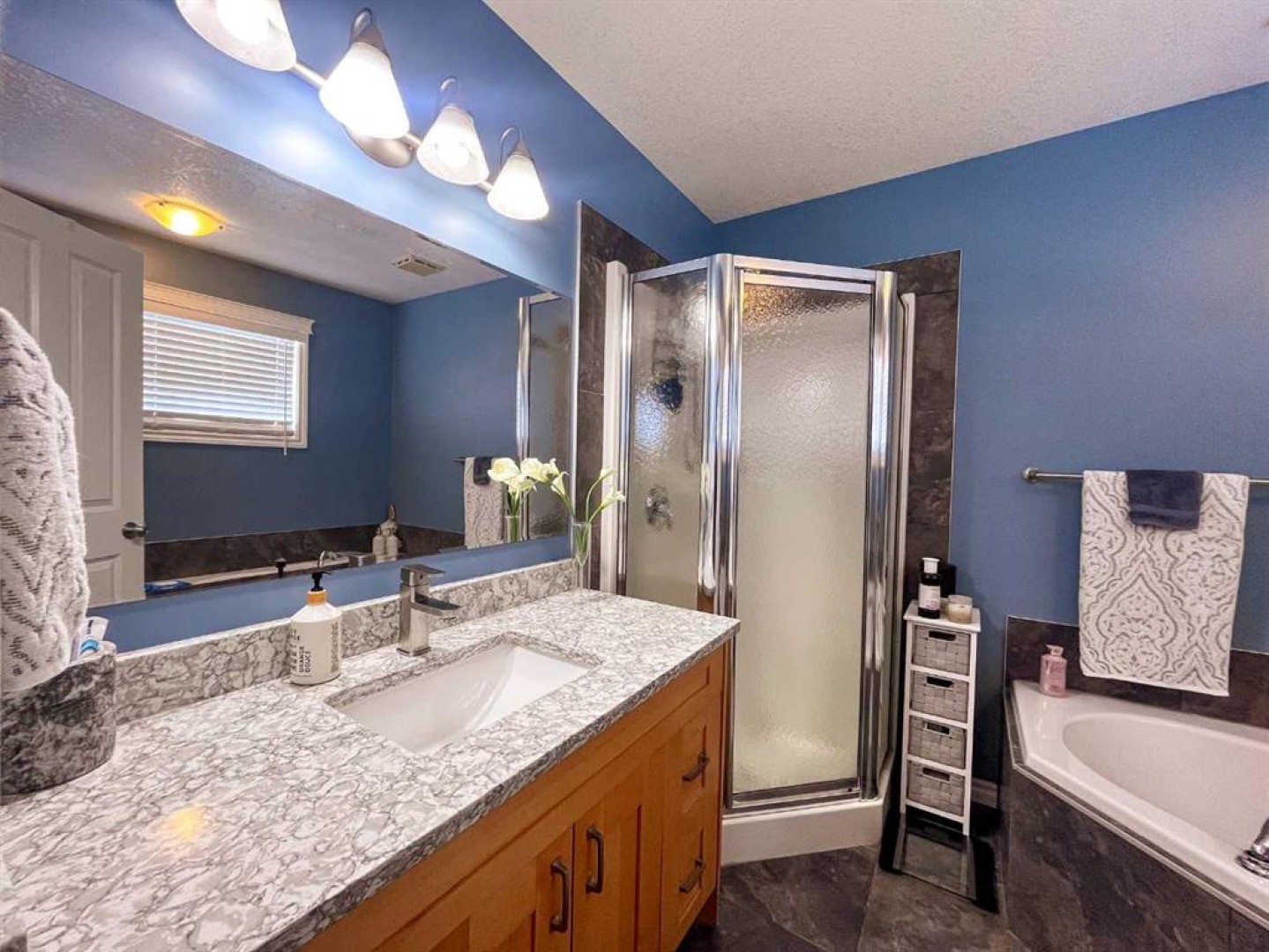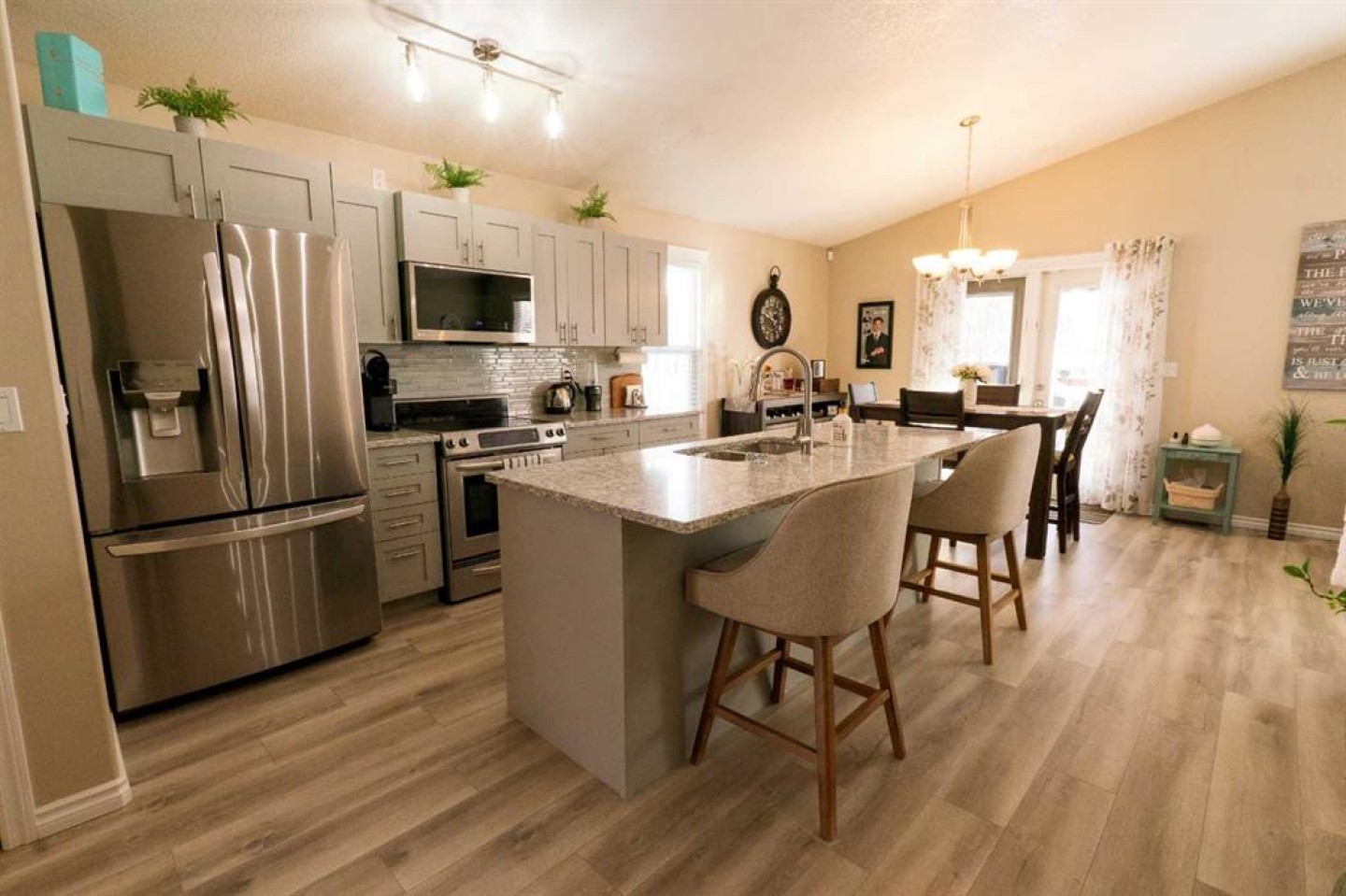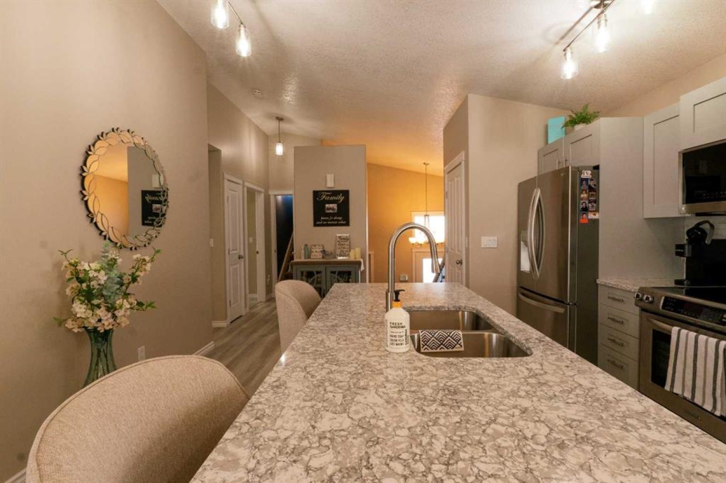 Welcome to this fully upgraded modified bi-level located in the highly desirable community of Signature Falls, offering 4 bedrooms and 3 full bathrooms with a functional and spacious layout perfect for families.This home has seen many recent upgrades, including fresh paint, new quartz countertops, soft-close cabinetry, new laminate flooring, and newer stainless steel appliances including microwave, refrigerator, and dishwasher. The hot water tank was replaced in 2023, adding extra peace of mind. The home also features central air conditioning, vaulted ceilings, and a convenient walk-in pantry.The bright living room overlooks the backyard and opens onto a large deck covered with a gazebo, creating the perfect space for outdoor relaxation or entertaining. The private primary bedroom level offers a spacious retreat complete with a walk-in closet and a 4-piece ensuite featuring a jacuzzi tub and separate shower.The fully developed basement provides additional living space with a large family room, Bedroom and a Full Bathroom while the 24x24 heated garage, fenced yard, and landscaped backyard add to the overall comfort and functionality of this home.Located in Signature Falls, one of Grande Prairie’s most sought-after neighbourhoods, this home is close to parks, schools, walking trails, and all amenities.A fantastic opportunity to own a beautifully upgraded home in a great location — book your showing today!